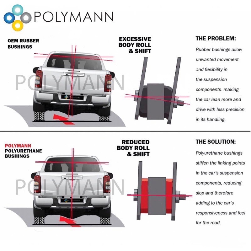 Polymann Mitsubishi Triton L200 (2005-2014) Lower & Upper Arm and Leaf Spring PU Bush (Not Silicone Bush,Not Nylon Bush)