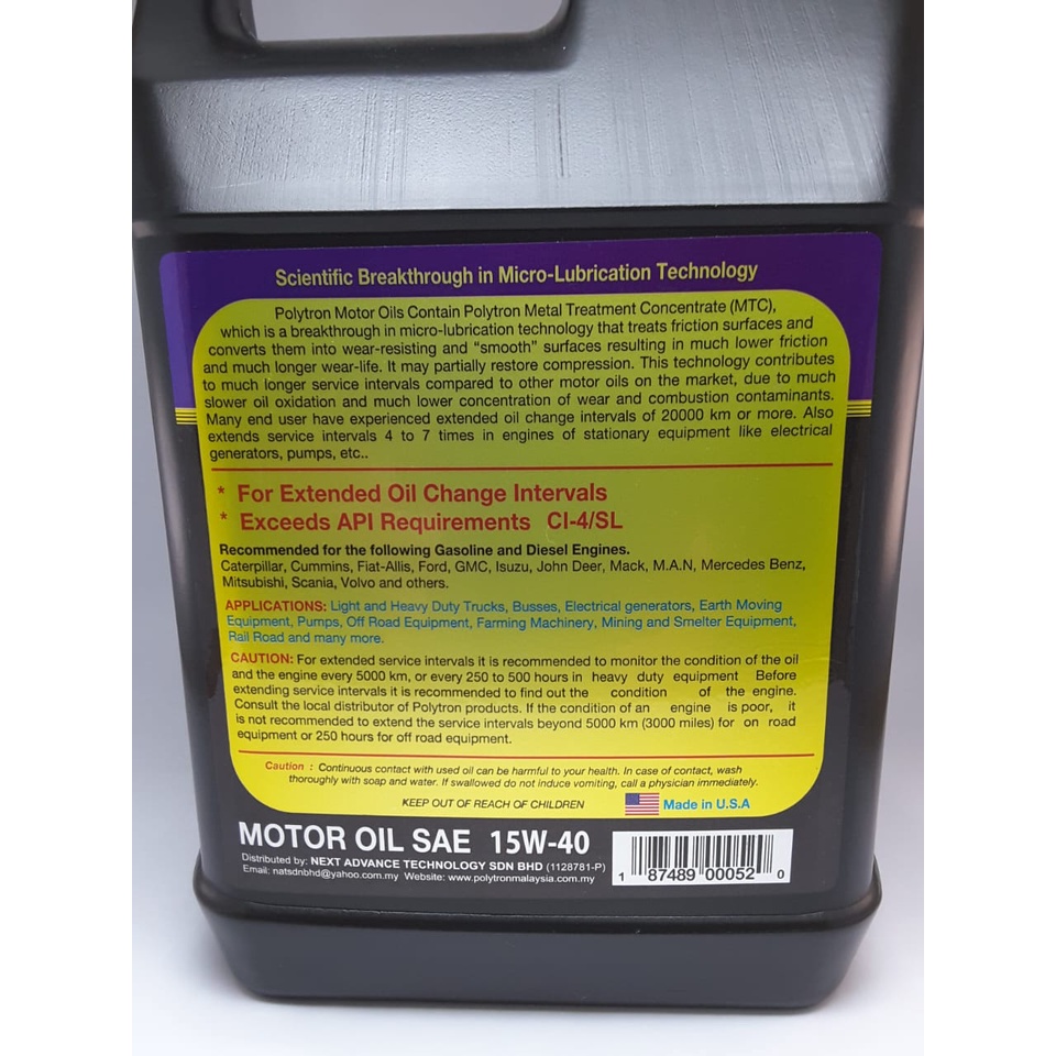 Polytron Fully Synthetic 15W-40 Motor Oil 4 Liter - Military Industrial Grade