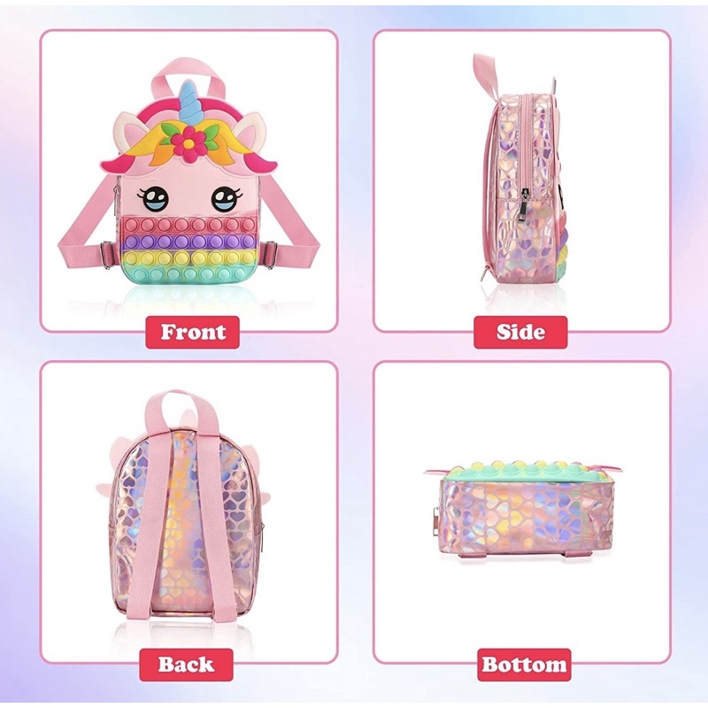 Pop Backpack Purse for Girls Backpack Pop Shoulder Bag Mini School Backpacks Unicorns Gifts for Girls Kids Push Toy Bags
