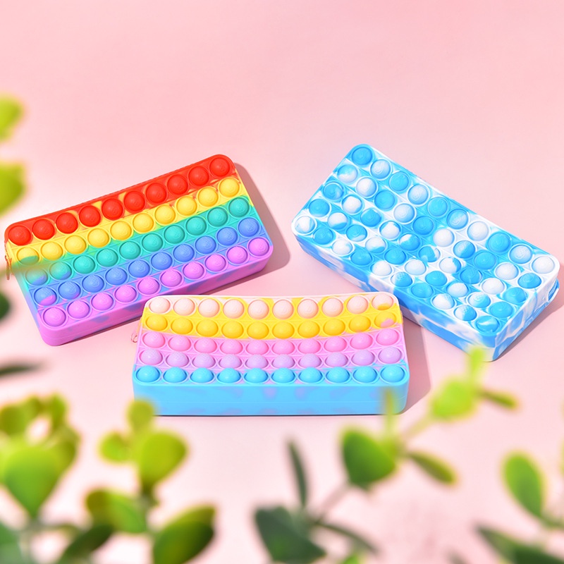 Pop It Pencil Case stationery box Fidget Toy Push Bubble For Kids Soft Silicone Squishy Puzzle Creative Stationery Gifts