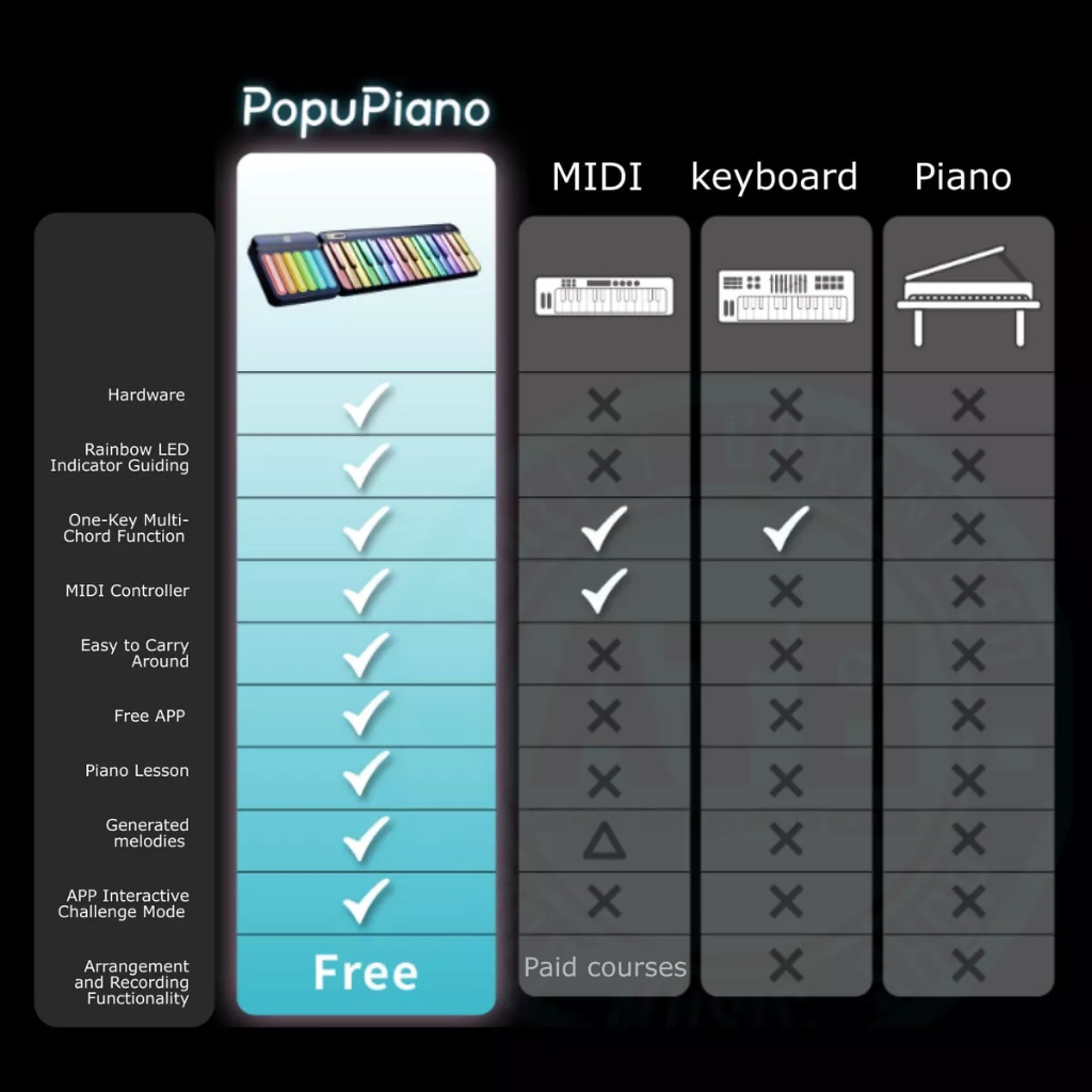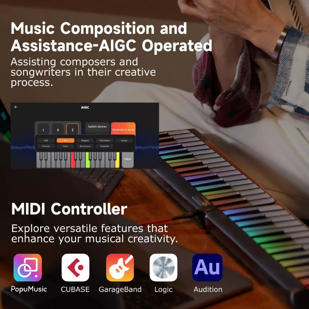 PopuPiano Smart Portable Piano Smart Portable Piano MIDI Controller Smart LED Keyboard Powerful Chord Pad Compatible 5 Languages