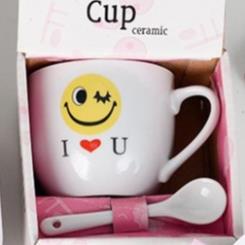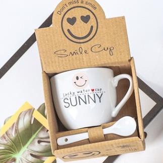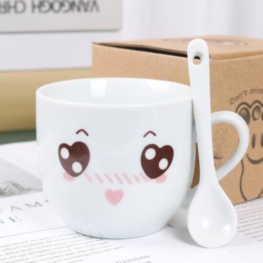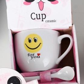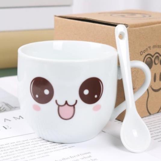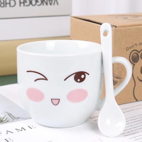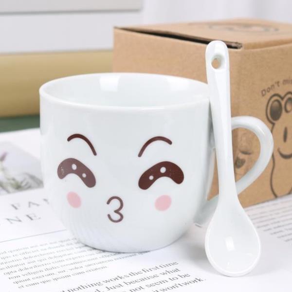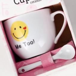 Porcelain Cup For Drinking Water, Smiley Face Shaped Ceramic Cup Many Large size Samples, Diverse Baby With Tea Making Spoon, Meaningful Anniversary Gift