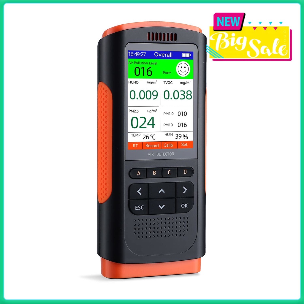 Portable 8-in-1 Air Quality Monitor Air Detector Meter Tester HCHO TVOC PM2.5/1.0/10 Temperature and Humidity Detector AQI Tester Air Quality Test for Home Office School