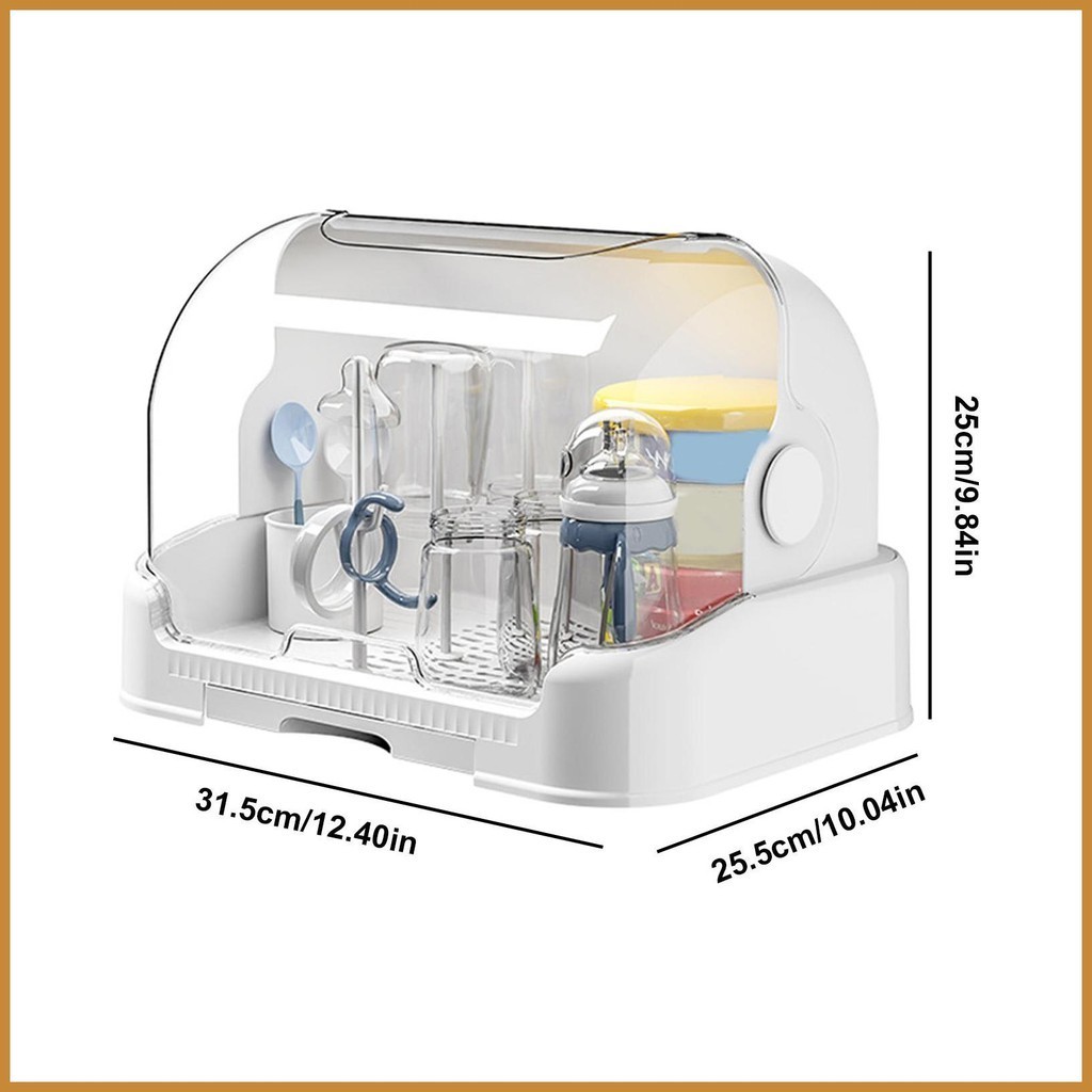 Portable Baby Milk Bottle Storage Box Space Saving Dustproof Bottle Drying Racks with Removable Drip Tray greiwemy