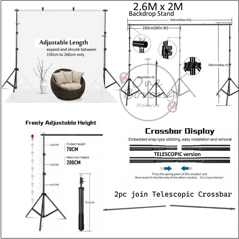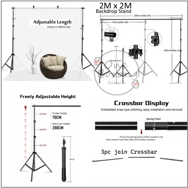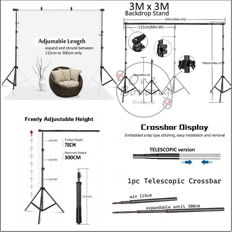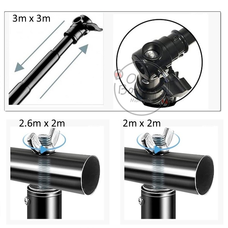 Portable Backdrop Photo Shoot Studio Adjustable Stand 2x2M 2.6x3M 3x3M