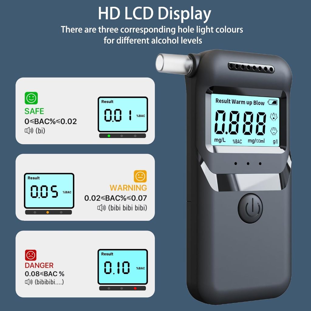 Portable Breathalyzer Professional Grade Accuracy Alcohol Tester with LCD Display for Personal Use