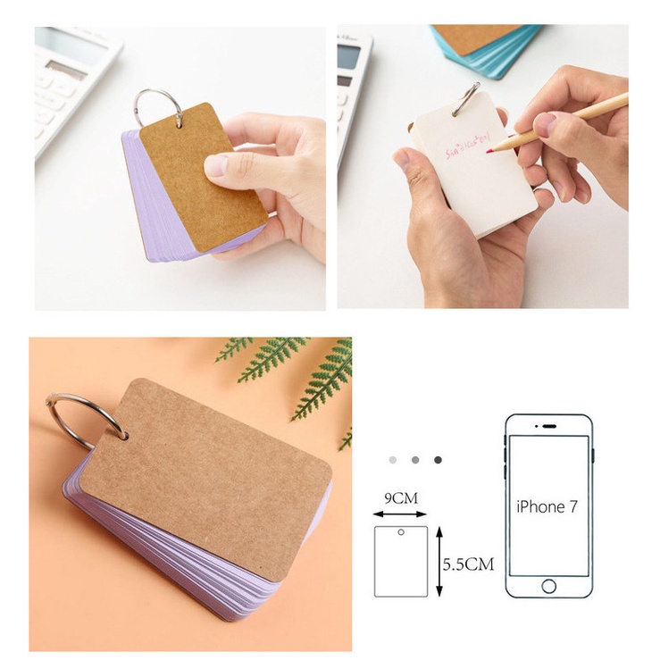 Portable Colourful Plain Hard Cover Memo Flash Cards Metal Ring Blank Vocabulary Word Learning Teach School Stationery