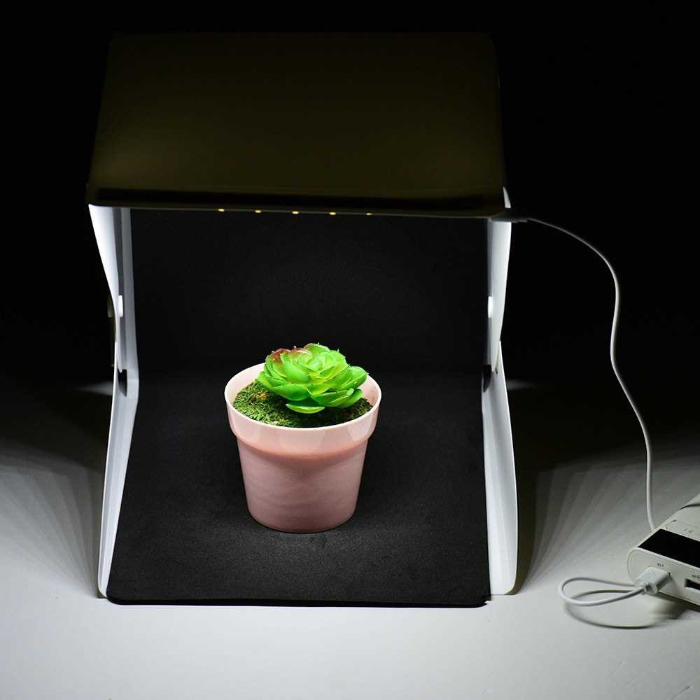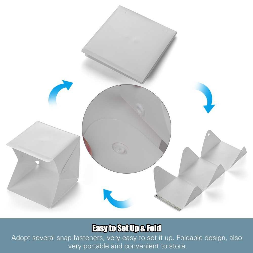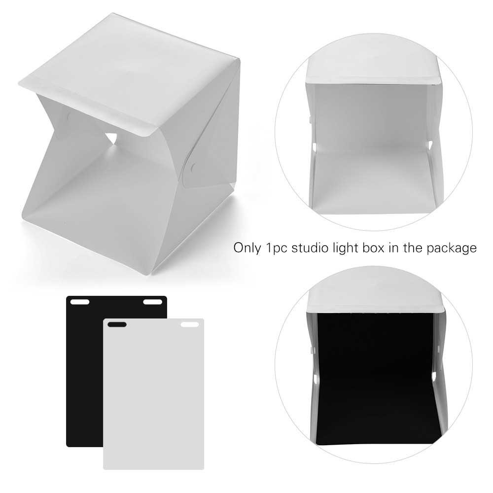 Portable DIY LED Studio Light Box 6000K Mini Foldable Photography Tent with Black White Backgrounds USB Power Supply fo