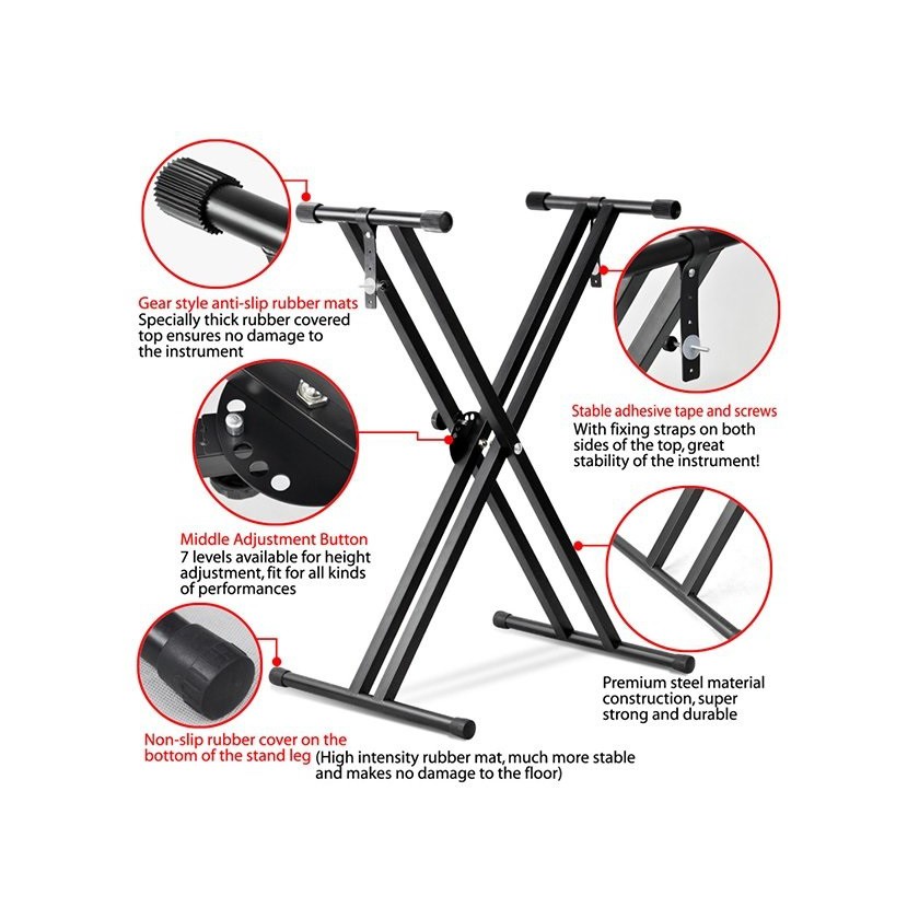 Portable Double X Solid Heavy Duty Music Piano Keyboard Stand (Tickening)