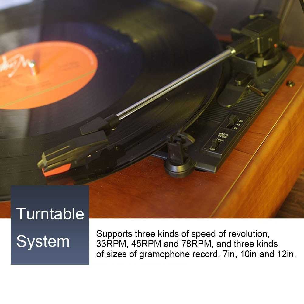 Portable Gramophone Vinyl Record Player Vintage Classic Turntable Phonograph with Built-in Stereo Speakers (Standard)