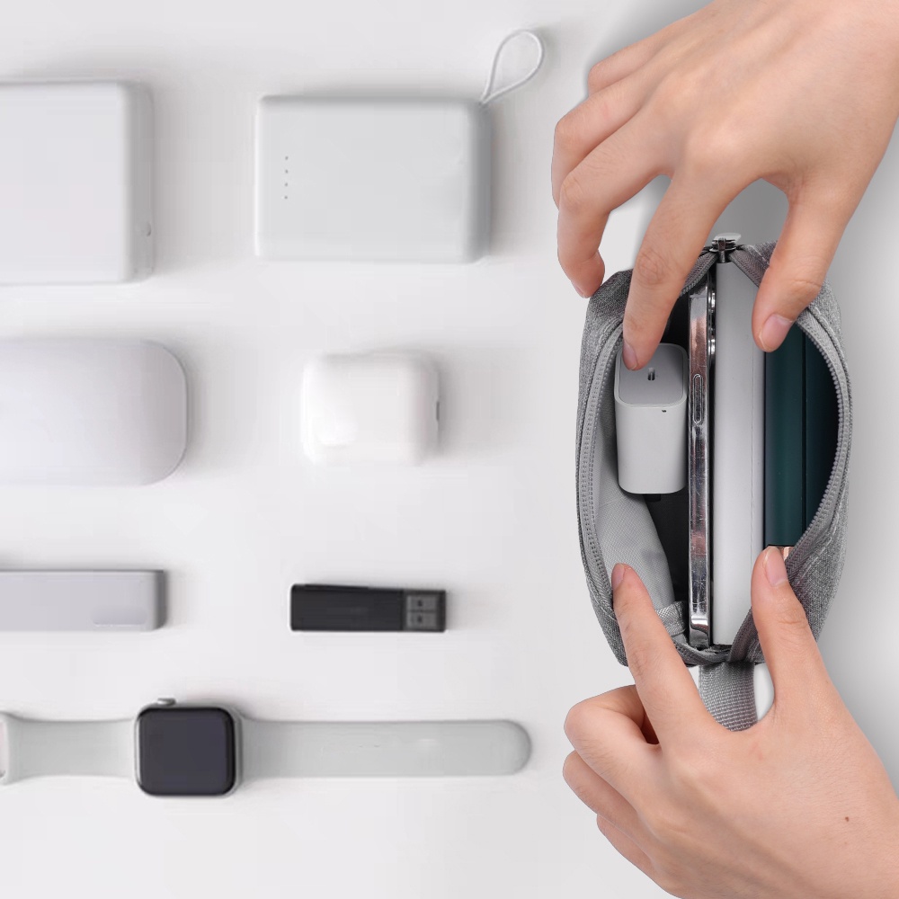 Portable Hand-carried Digital Storage Bag With Zipper / Waterproof Cable Polyester Organizer Package / Wearable Travel Cable Anti-theft USB Bags / Electronic Data Line Manager
