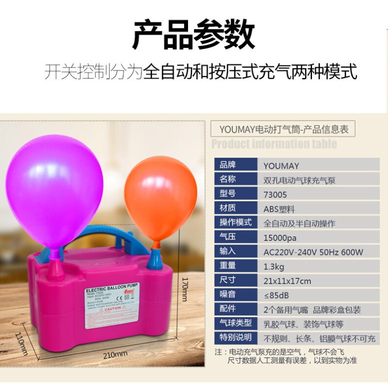 Portable Inflator Balloon Pump Dual Nozzle Balloon Air Auto Electric Pump Inflator Balloon Tool Party Decoration
