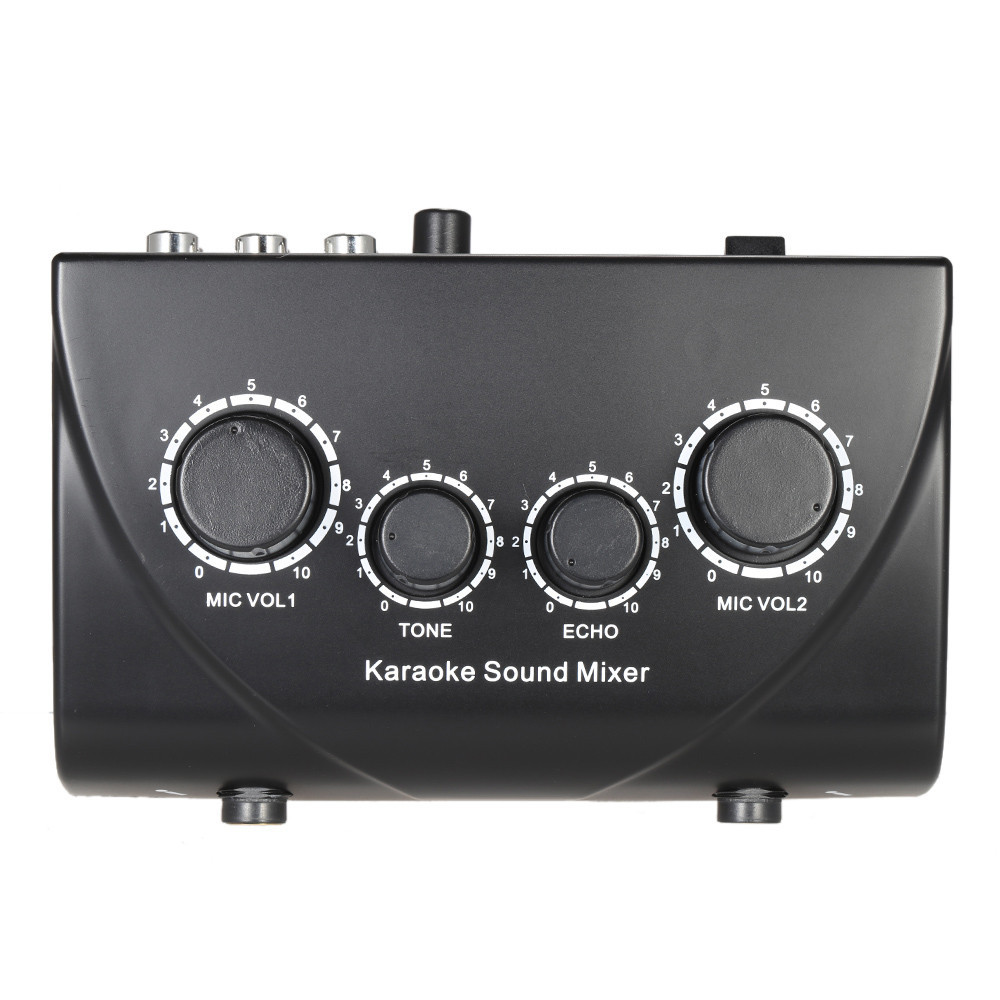 Portable Karaoke Sound Audio Stereo Sound Mixer Dual Microphone Inputs With RCA Cable Power Adapter for TV PC Smartphone Amplifier