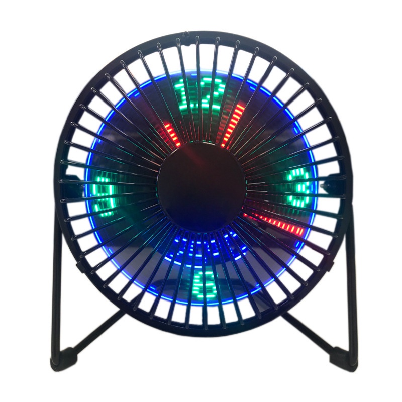 Portable Led Mini Desktop Clock Wrought Iron Fan Usb Time Temperature Flash Word 4 Inch Fan