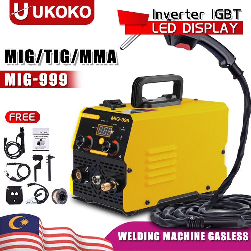 Portable MIG-999 Mesin Welding Machine Gasless Mini MIG Full Set Gasless MIG/MMA/TIG 3 in1 Inverter