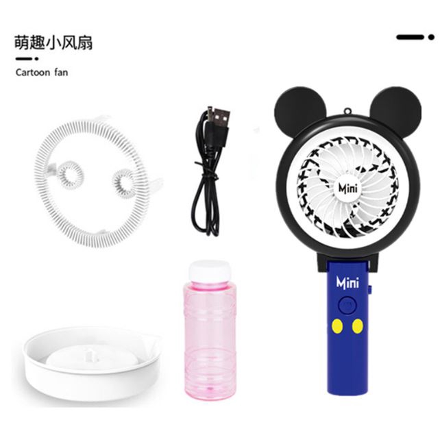 Portable Mini Usb Fan Led Light Bubble Fan Mickey Fan Bubble Light Fan