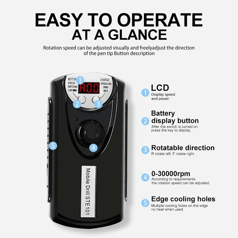 Portable Nail Drill Machine 30000RPM Rechargeable Manicure Pedicure Nail Art Device Nail Polisher Powerful Grinding Carv