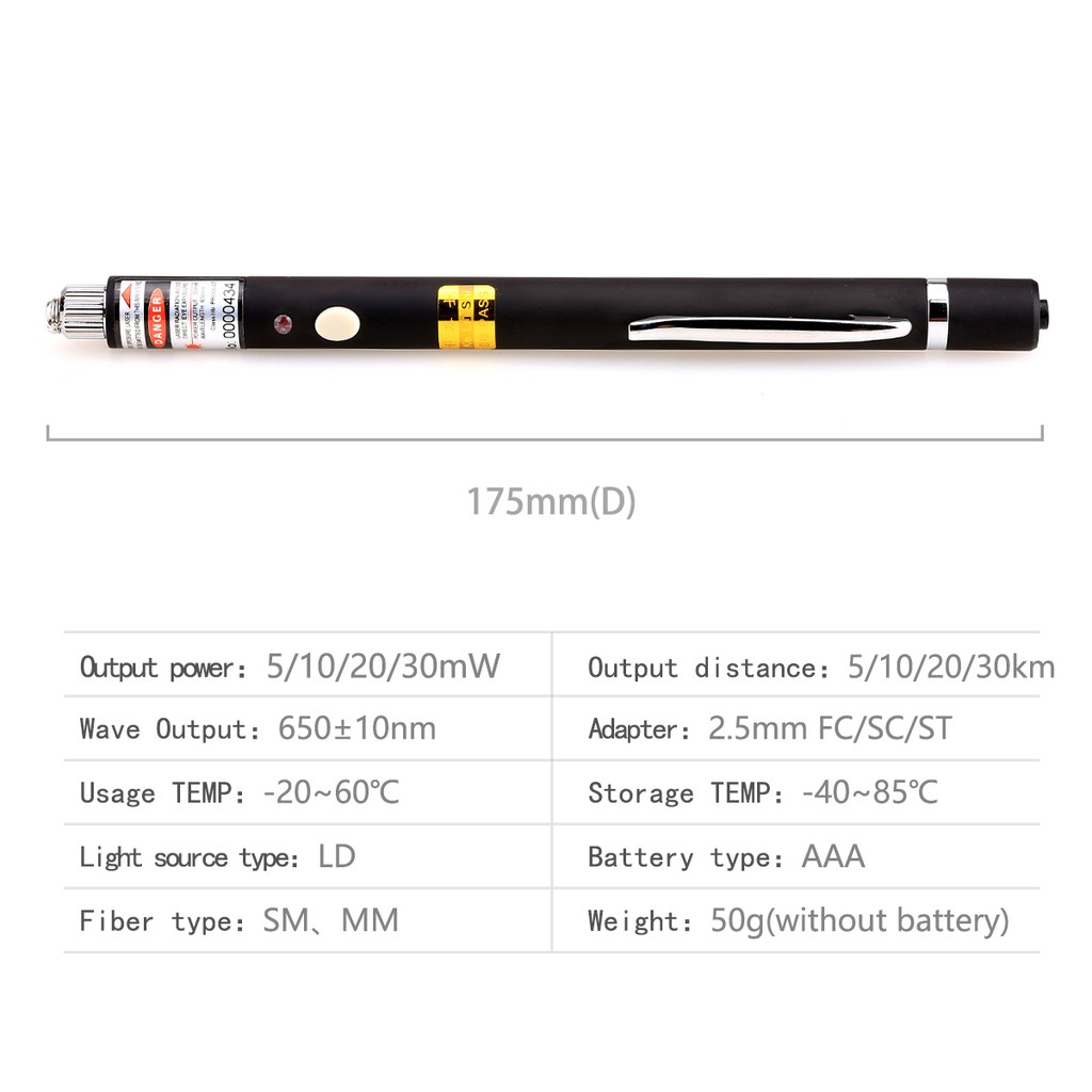 Portable Pen Type Visual Fault Locator Fiber Optic Cable Checker Tester with 2.5mm Universal Connector With FC Male to LC Female Adapter tool