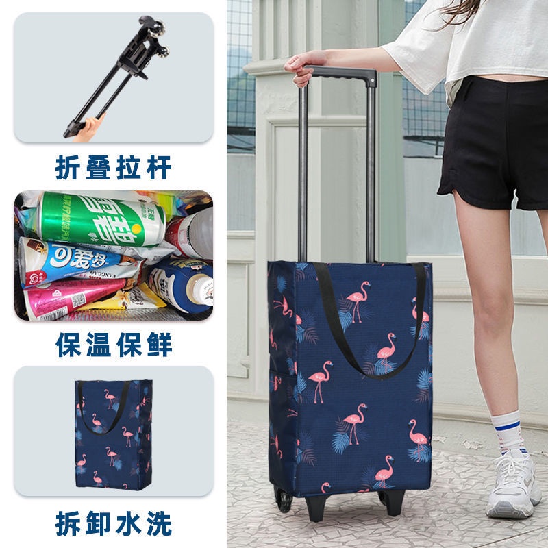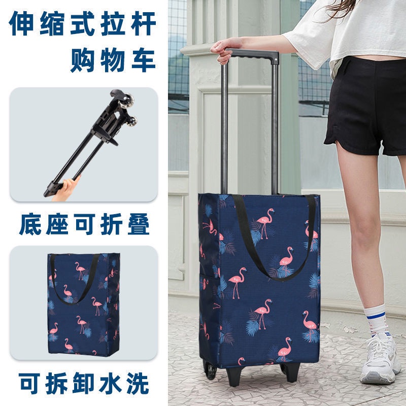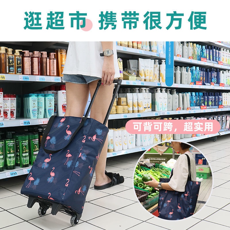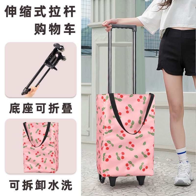 Portable Shopping Cart With Wheel Trolley Trailer Shopping Home Trolley Shopping Bag Foldable Tote Bag Wheeled Household Retractable Pull Rod Cart Portable Small Pull Cart