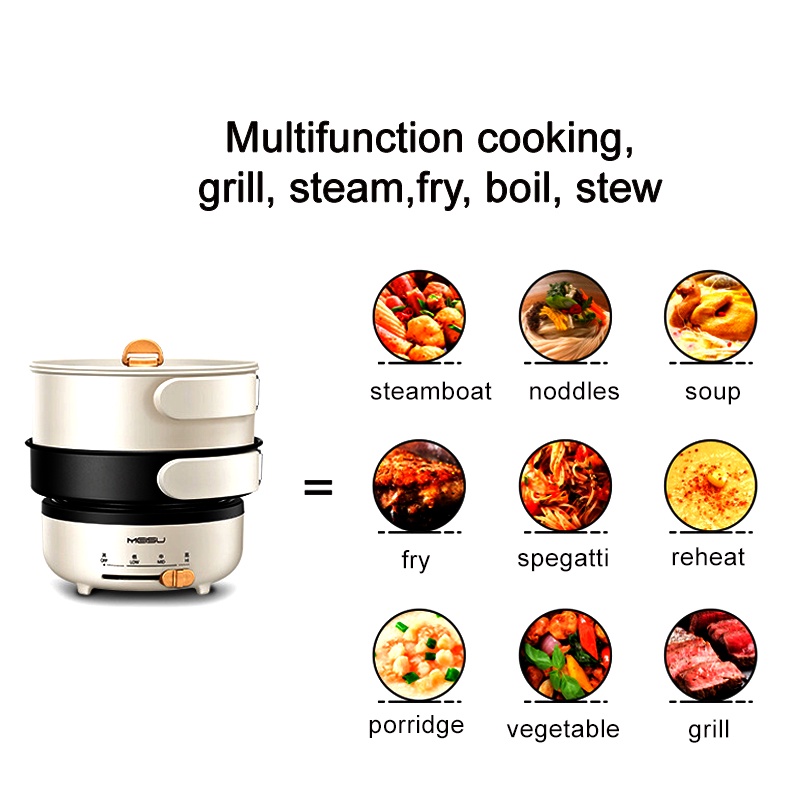 Portable Travel Electric Multi Function Cooker 2-Tier With Boil, Fry, Grill, Steam, Stew Functions 700W Plus Free Gift