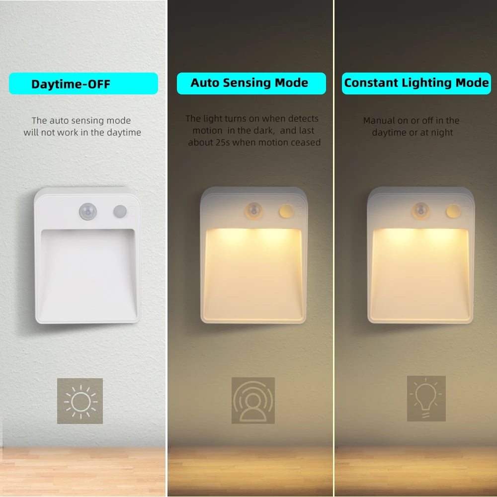 Portable Wall-mounted LED PIR Motion Sensor Auto Light/Wardrobe Cabinet Stairs Mini Night Lamp USB/Battery( Not include)