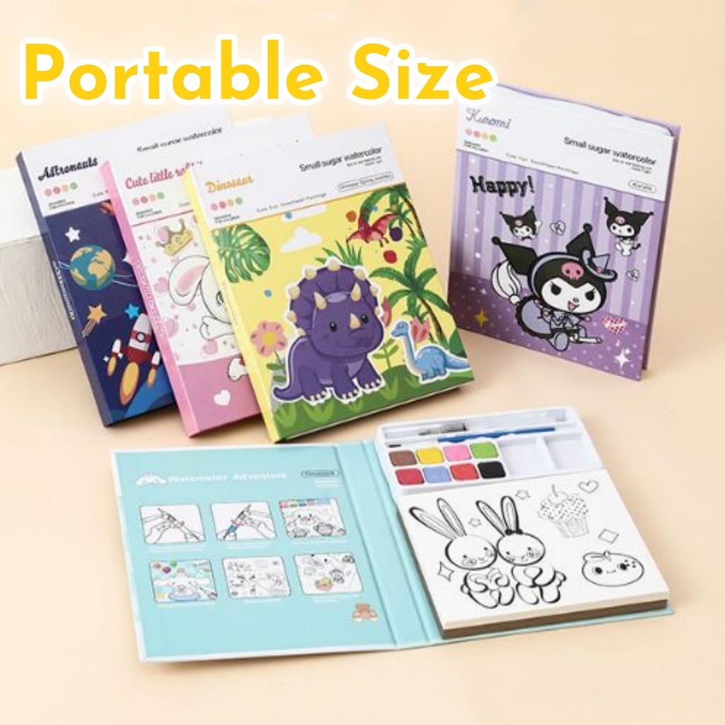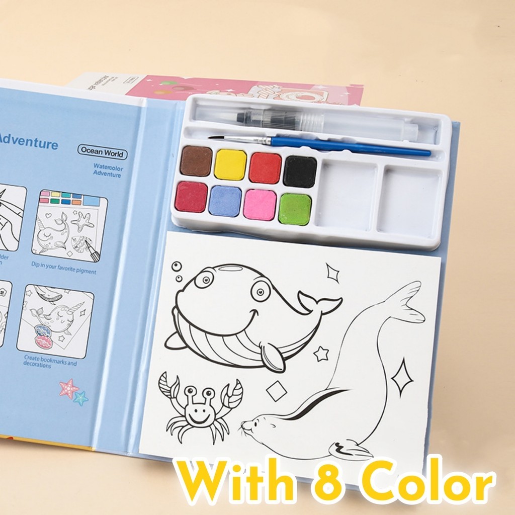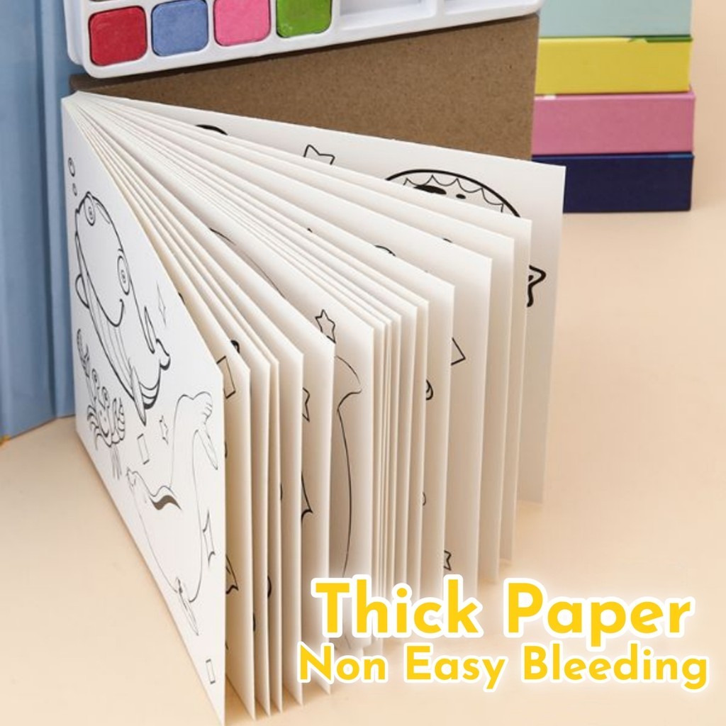 Portable Watercolor Graffiti Coloring Book Water Painting Book Drawing with Paint Water Powder Brush Coloring Notebook