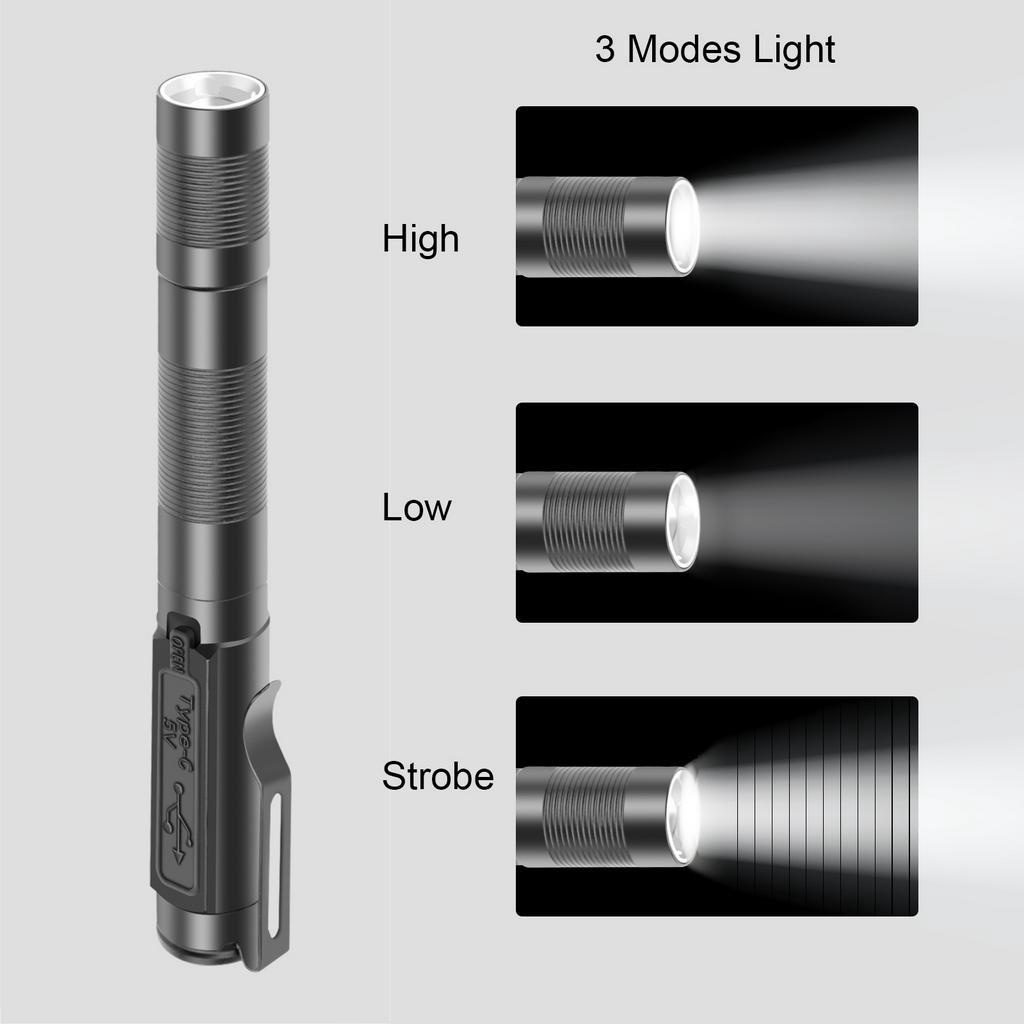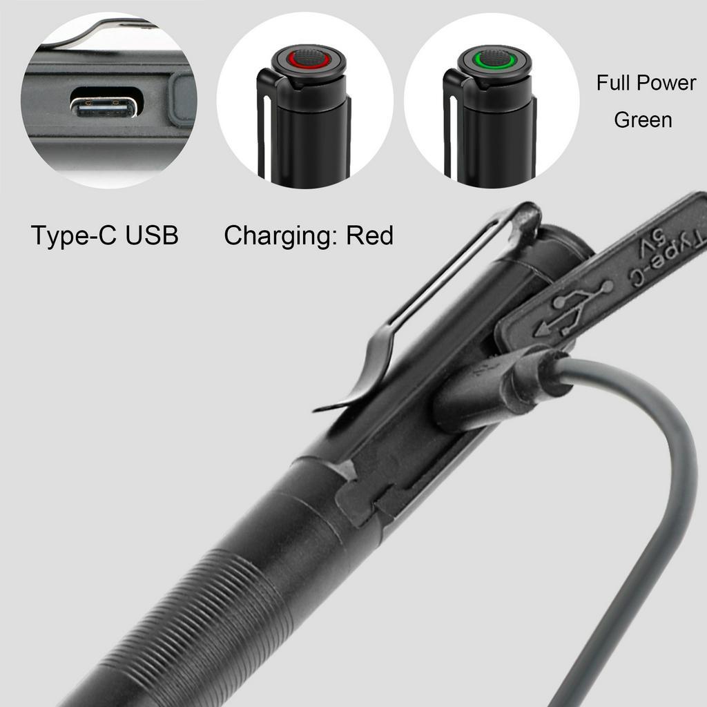 Portable aluminum alloy strong light LED pen light mini outdoor USB charging zoom pen clip flashlight