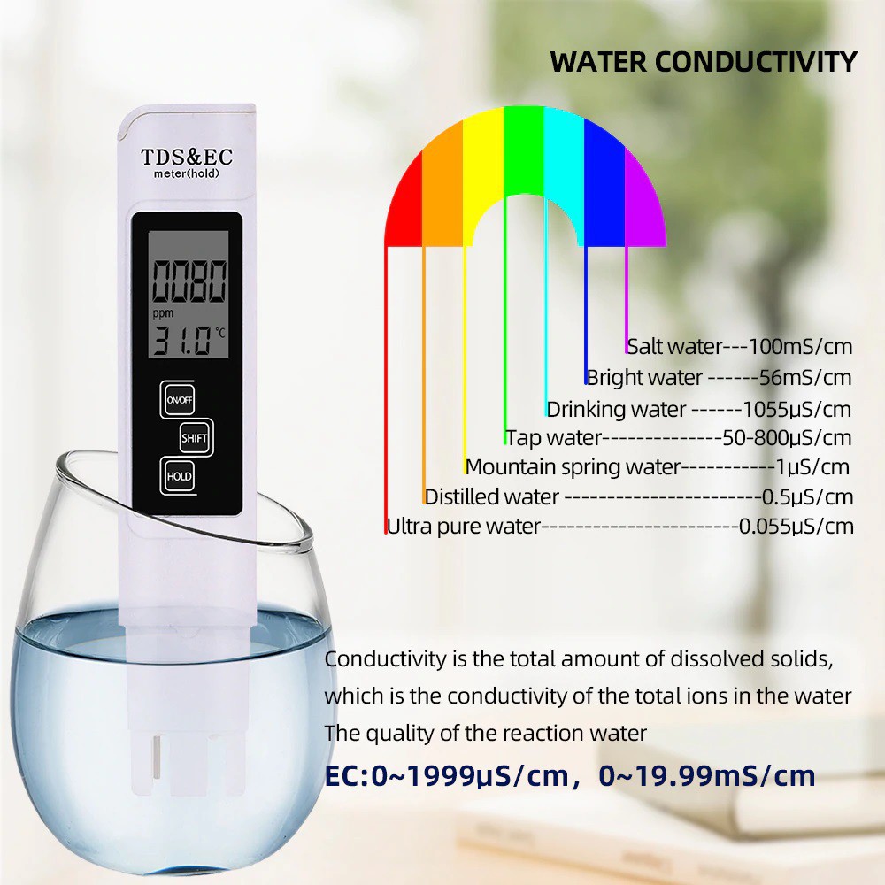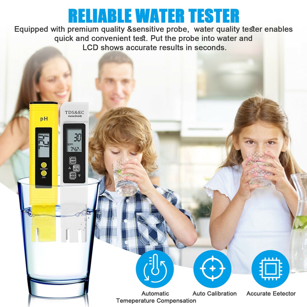 Portable pH meter digital LCD water purity TDs EC meter temperature tester pen monitor acid alkaline neutral water