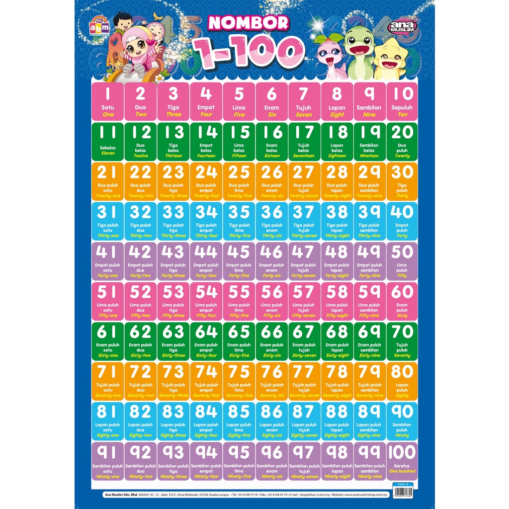 Poster Nombor 1-100 [Alat Bantu Mengajar ] Poster Berkualiti Kanak-Kanak 3 Tahun + | Prasekolah | Tadika