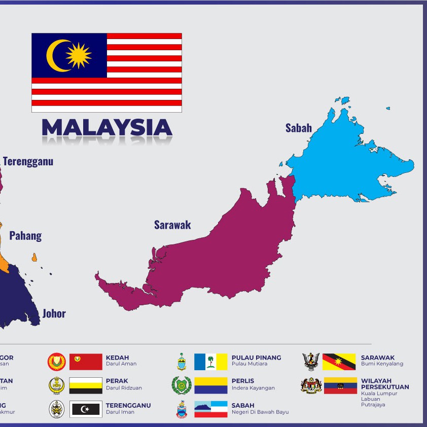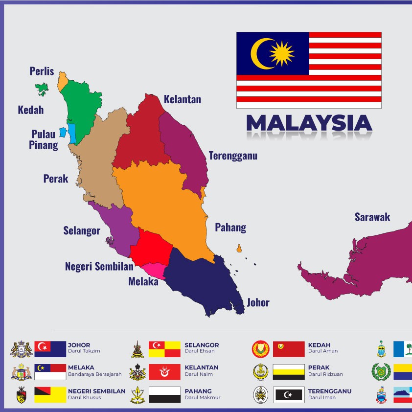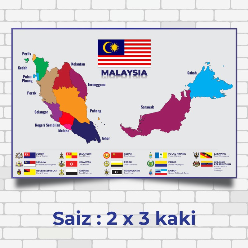 Poster Peta Malaysia Beserta Bendera & Jata Setiap Negeri | Keceriaan Sekolah & Kelas