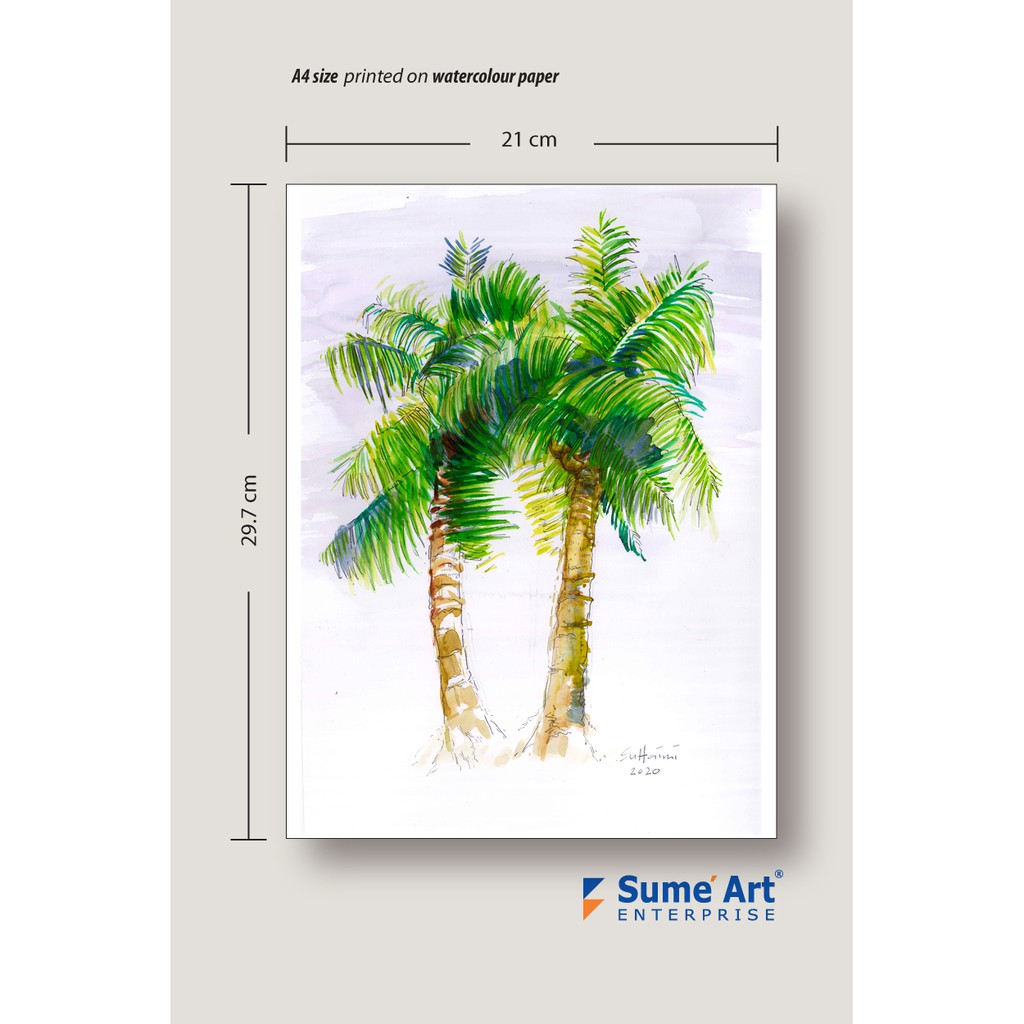 Poster Printed A4 Size on Watercolor paper landscape (Coconut tree 4)