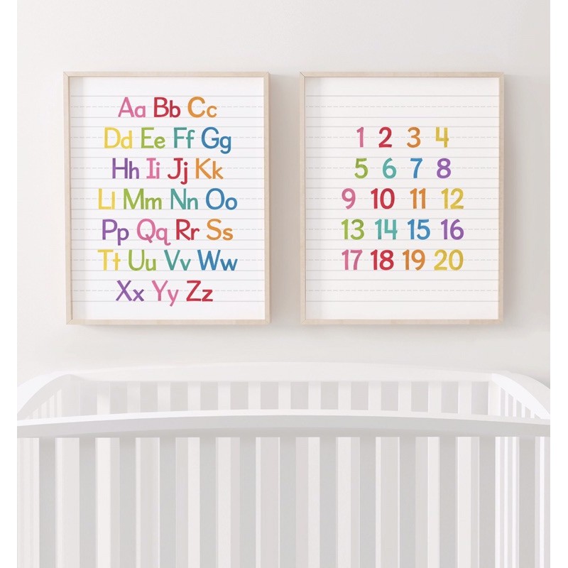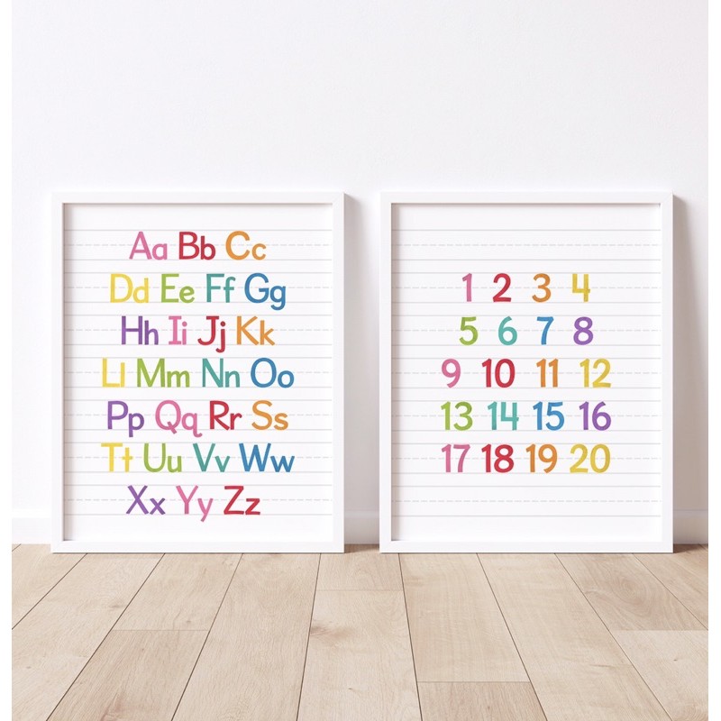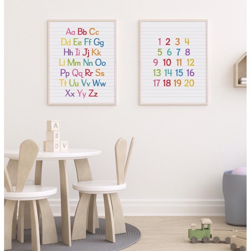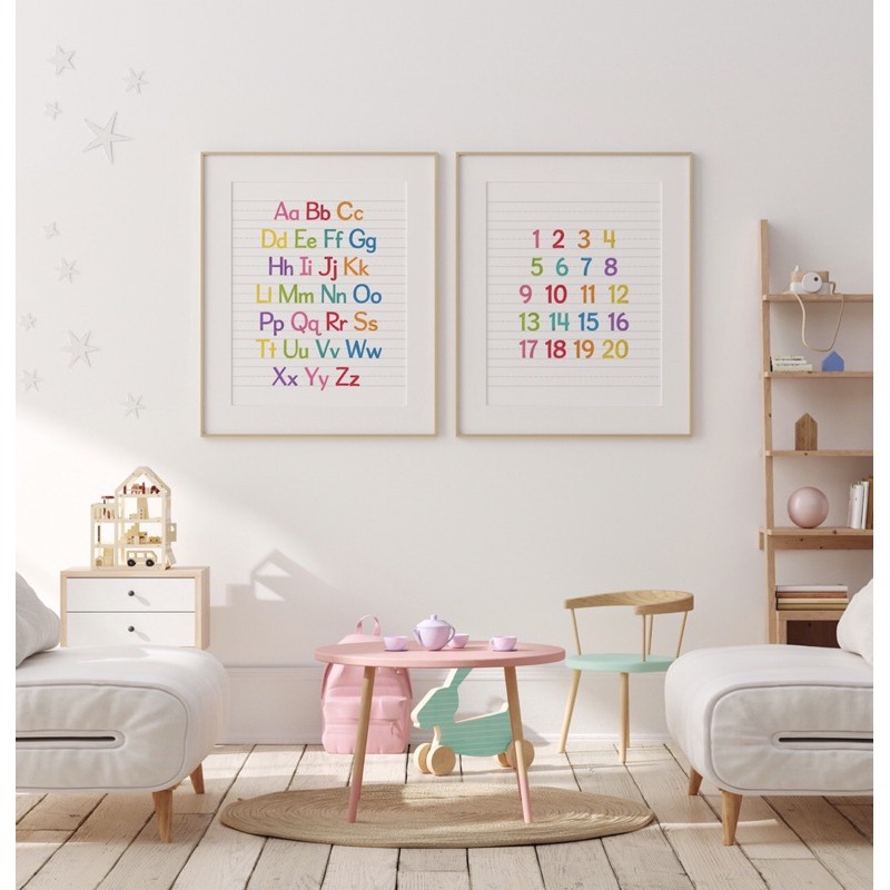 Poster belajar ABC,123 , set of 2,homeschool,educational poster,kids learning,easy learning ,study room
