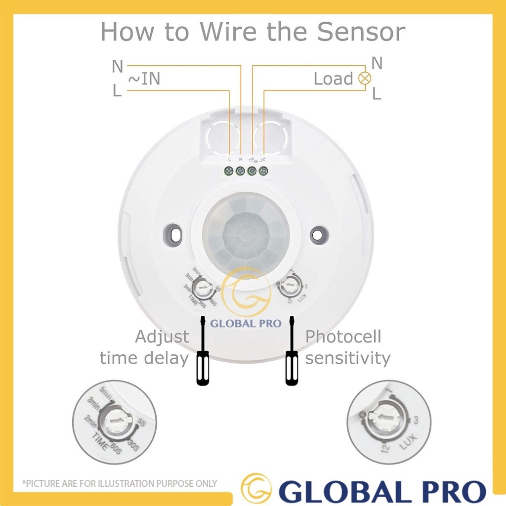 Potric 800W Infrared PIR Motion Sensor, Slim Design, 360 Degree Angle, 5 Amper, 8 Meter, LX1050B