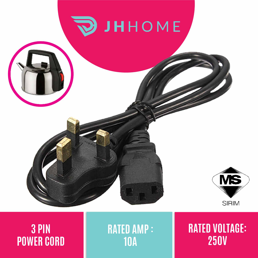 Power Cord 3 Pin Kettle Cable Plug 10A Fuse Wayar Kettle