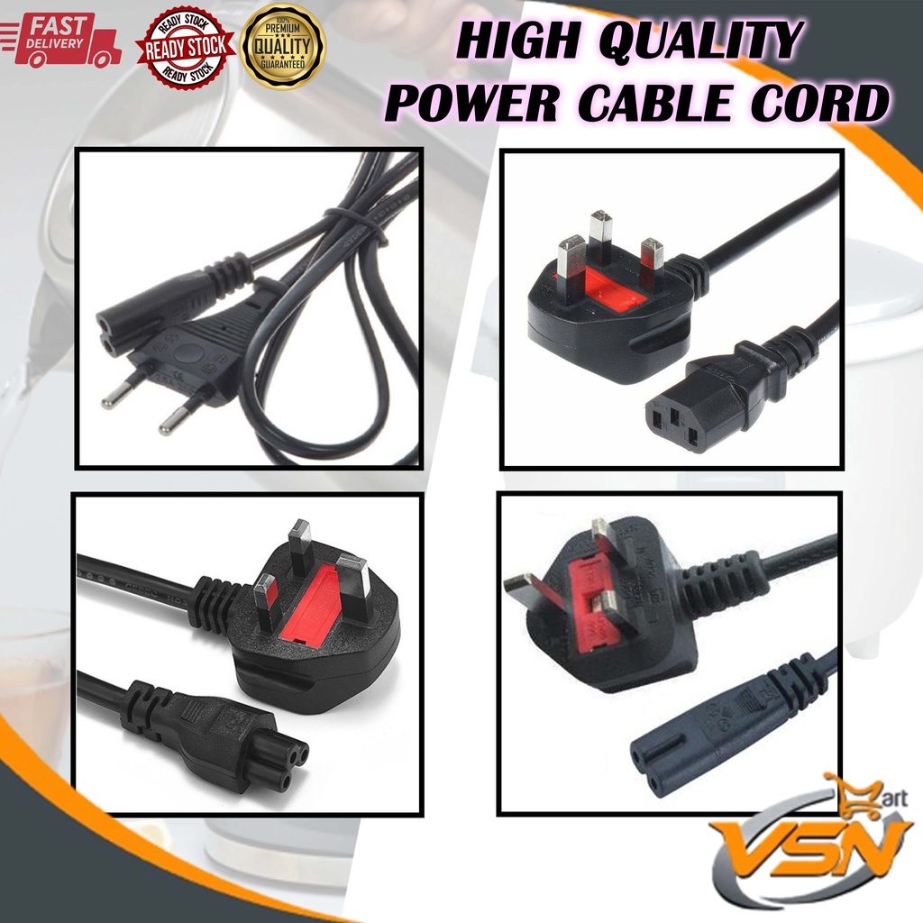 Power Cord Kettle Plug 3pin 2pin AC Printer Monitor Kettle Rice Cooker High Quality Big Wire 100% Copper