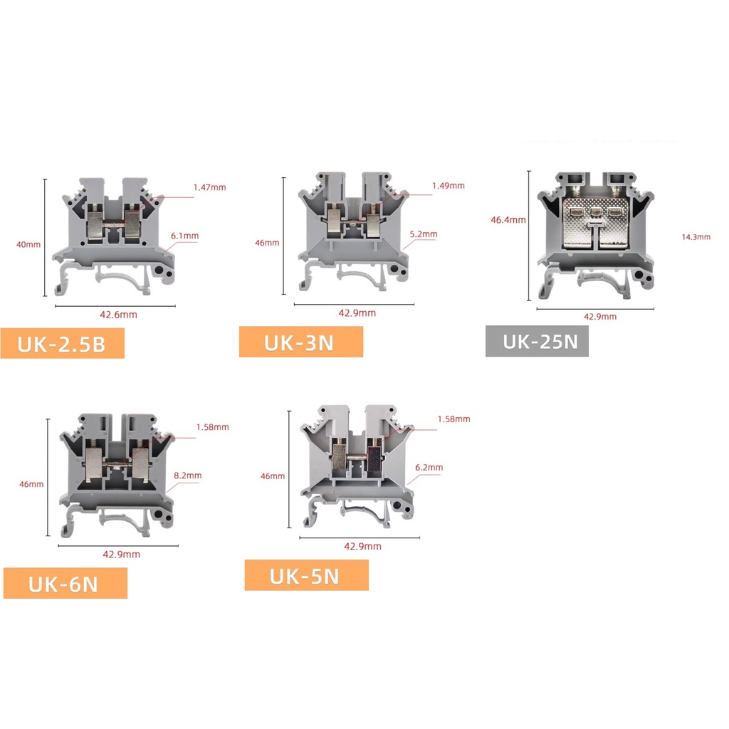 Power Distribution DIN Rail Universal Terminal Blocks Screw Panel Mount Earth Ground UK2.5B UK5N UK6N UK25N UK35N PT2.5