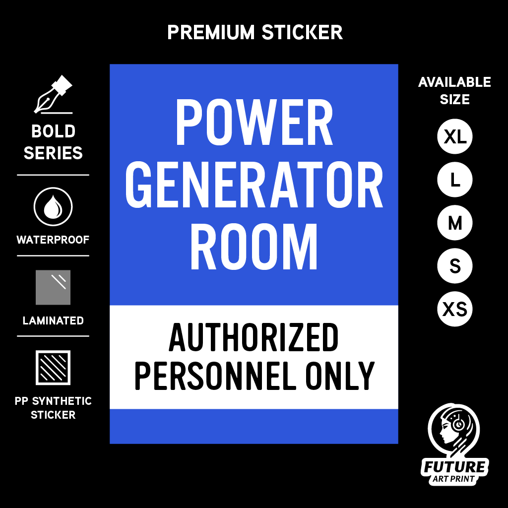 Power Generator Room. Genset Room. Authorized Personnel Only. No Entry. Sticker Sign Signage Label Door Entrance.