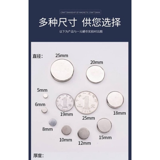 Power Magnet(Round 10mm/15mm/20mm) ( Thickness:1mm/2mm/3mm)