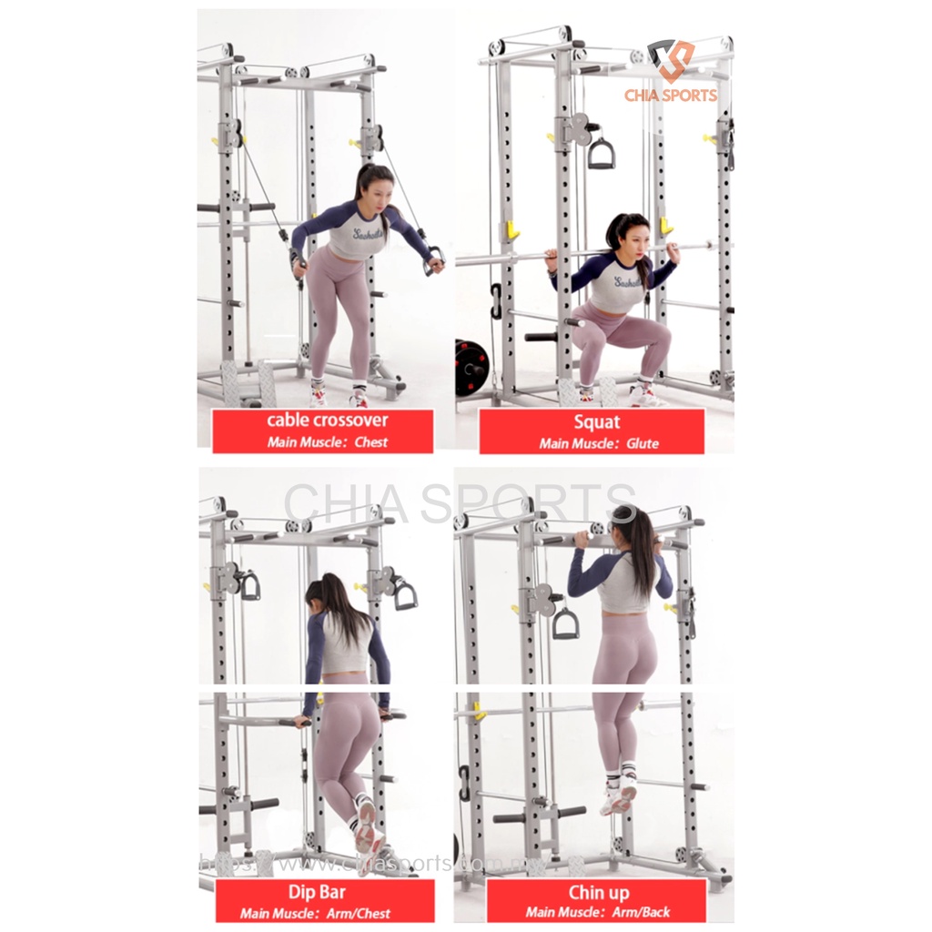 Power Rack Cable Cross PLK-2001D Multifunctional Crossover Machine Gym Station Landmine Squat Cage Set All Purpose Smith