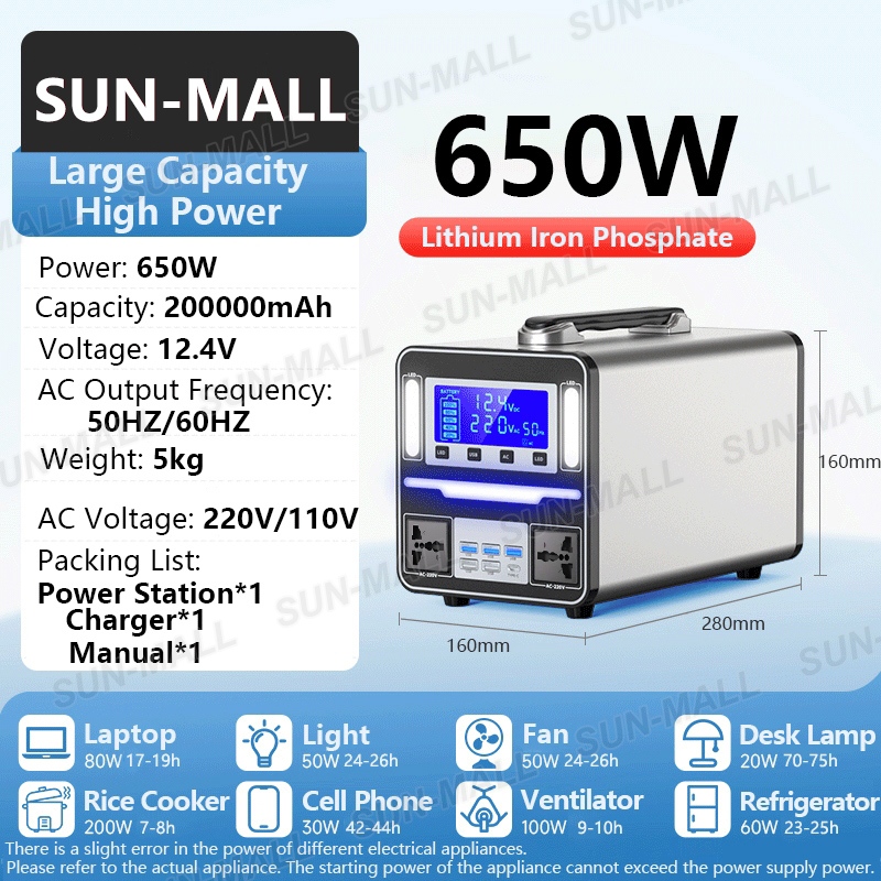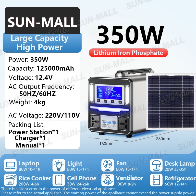 Power Station Solar Generator Silent Camping Power Supply Portable 350W/650W/1100W