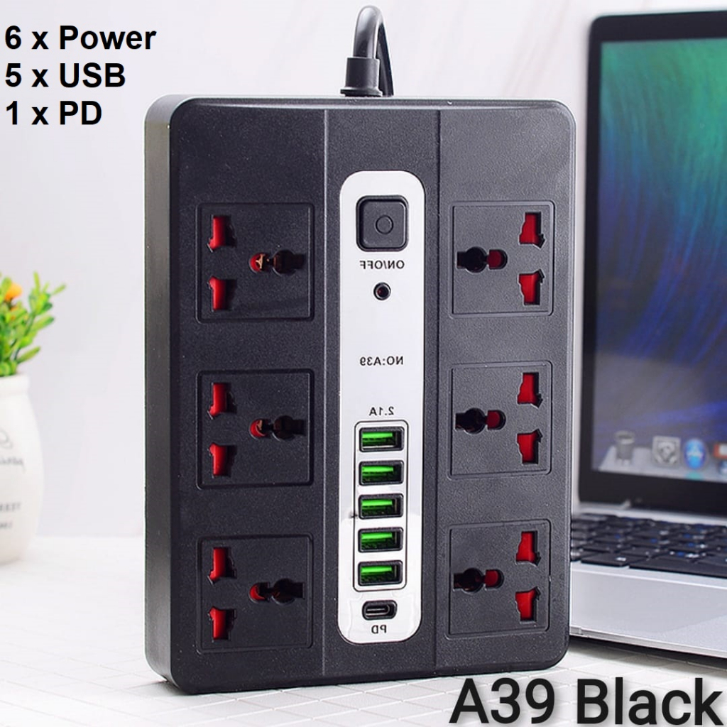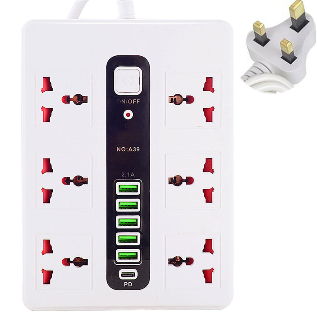 Power Strip with 6 Outlets 5 USB Ports 1 PD Port Flat Extension Cord Power Strip
