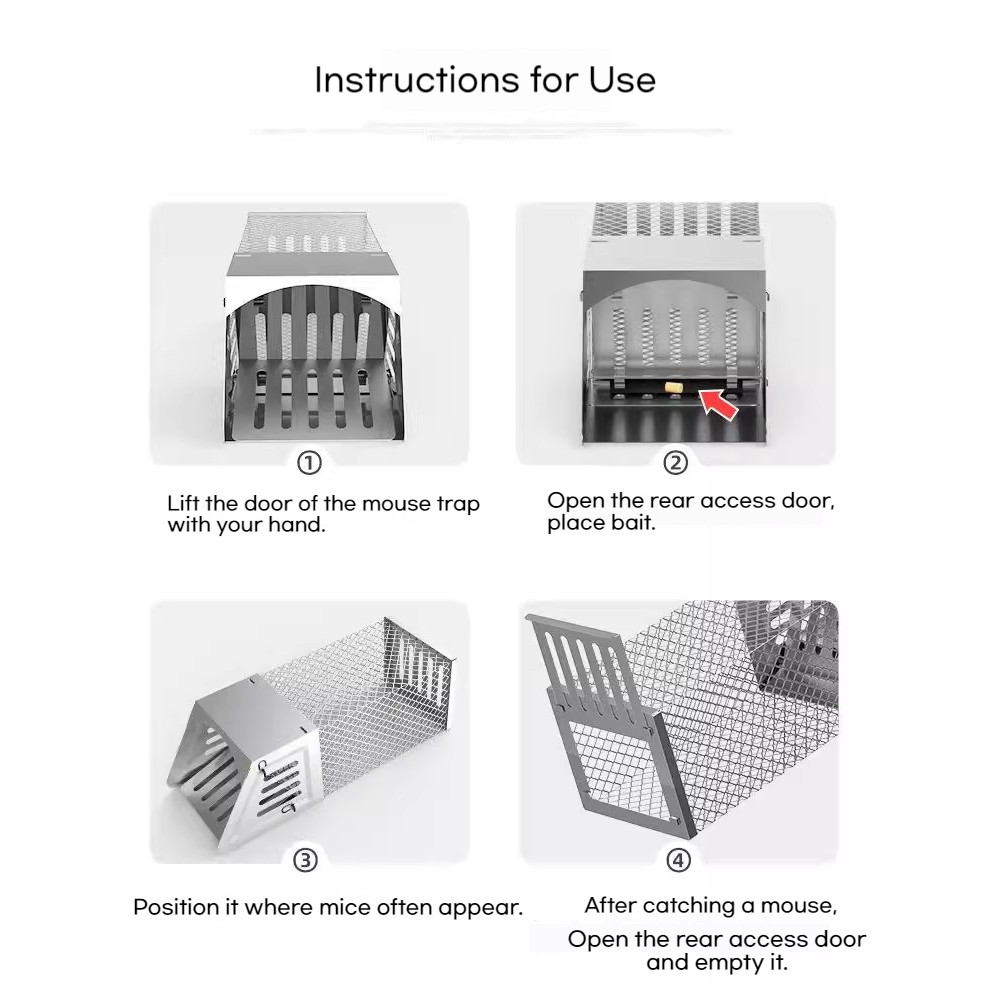 Powerful mousetrap, indoor and outdoor automatic mouse trap, large stainless steel mouse cage trap, rodenticide