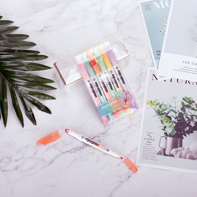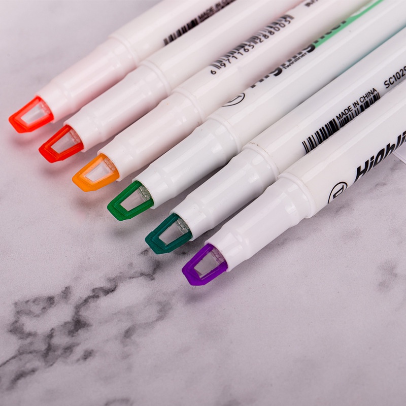 Practical Double-Ended Pvc Transparent Highlighter / Student Classroom Key Point Marking Highlighters / Colorful Fluorescent Pen Set