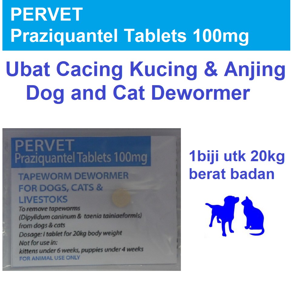 Praziquantel Dog & Cat Ubat Cacing Tapeworm Dewormer , 1 Tablet utk 20kg Body Weight