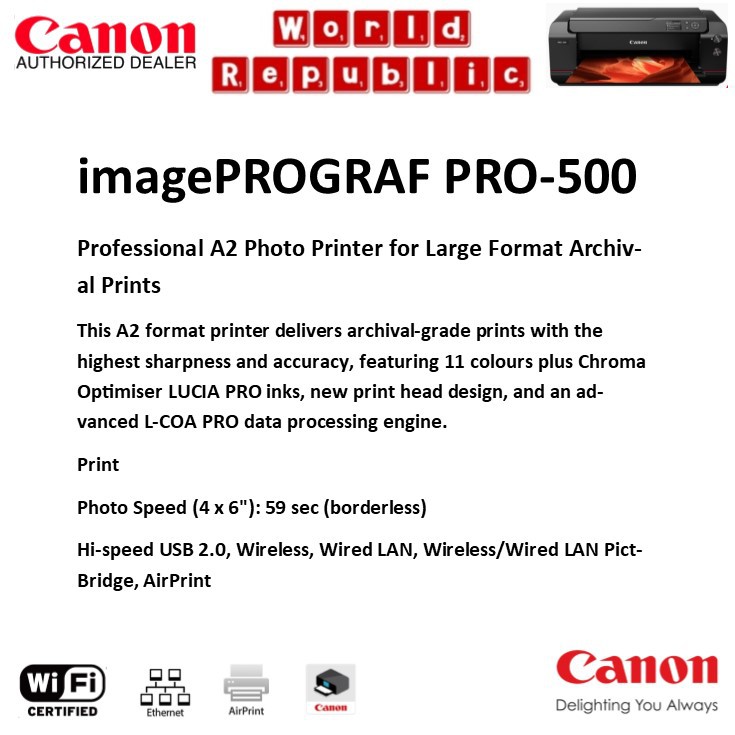 Pre-Order:- Canon imagePROGRAF PRO-500 Professional A2 Photo Printer for Large Format Archival Prints - WiFi, Ethernet