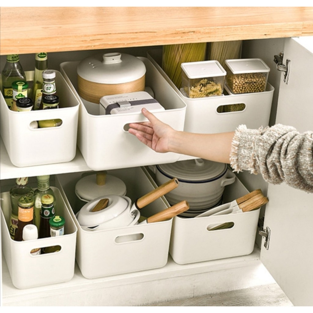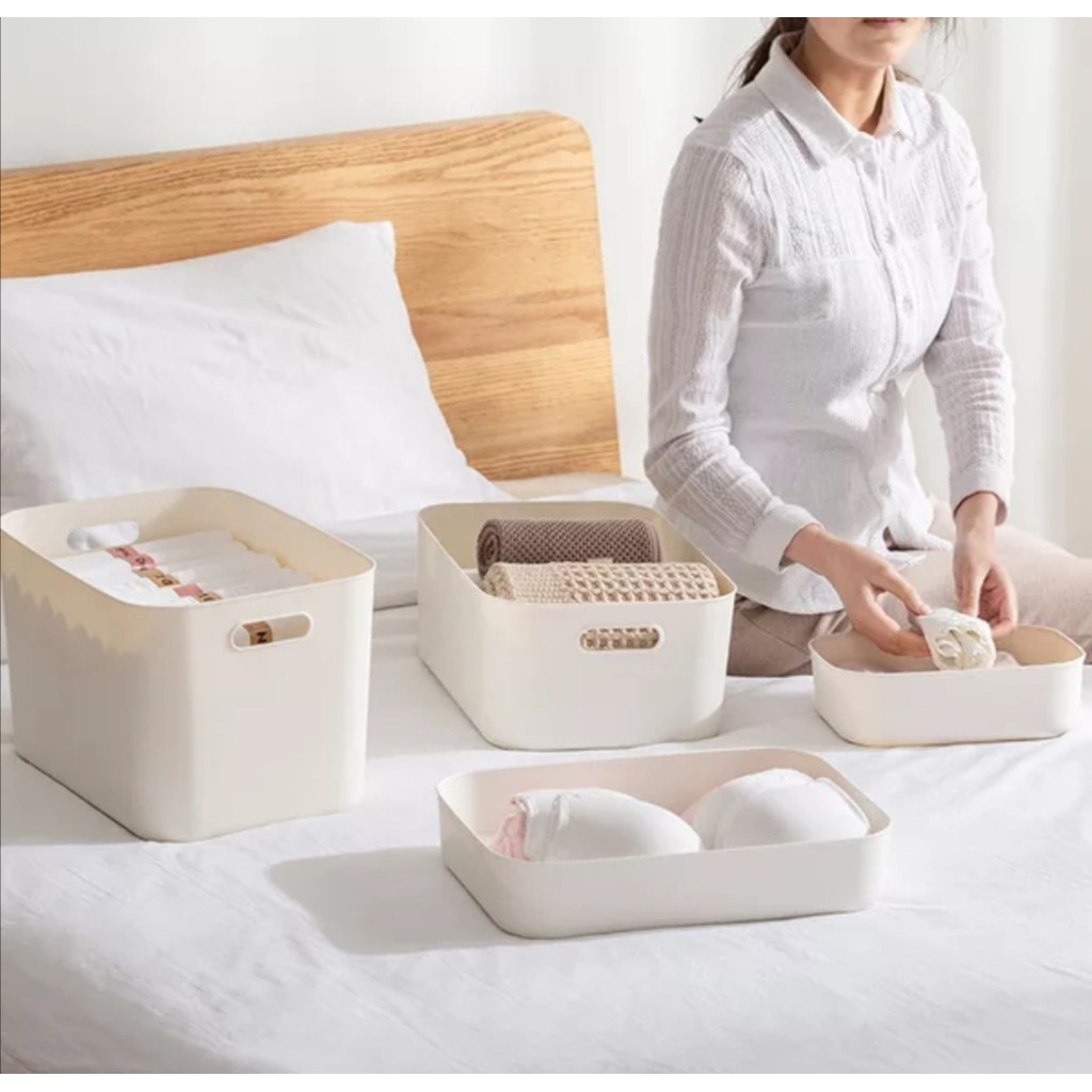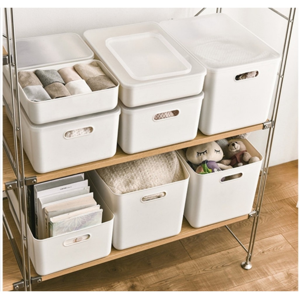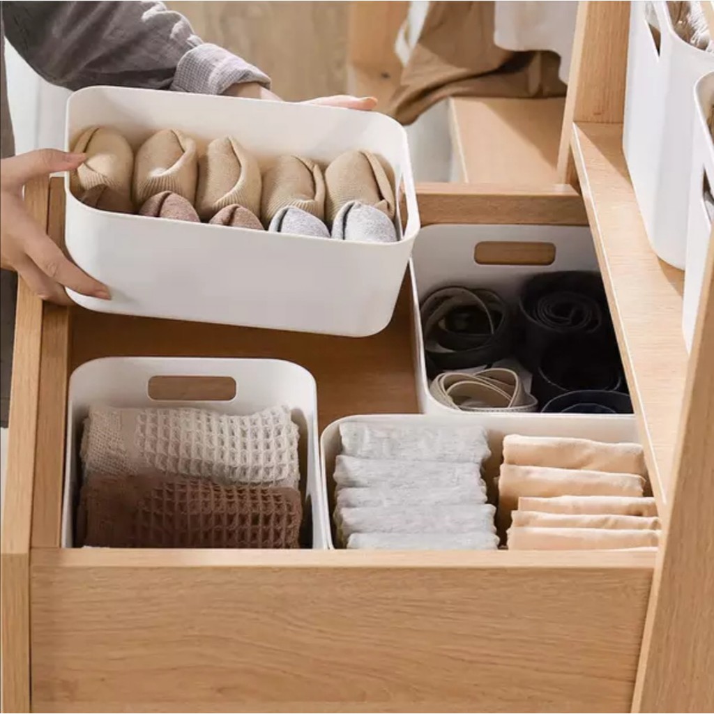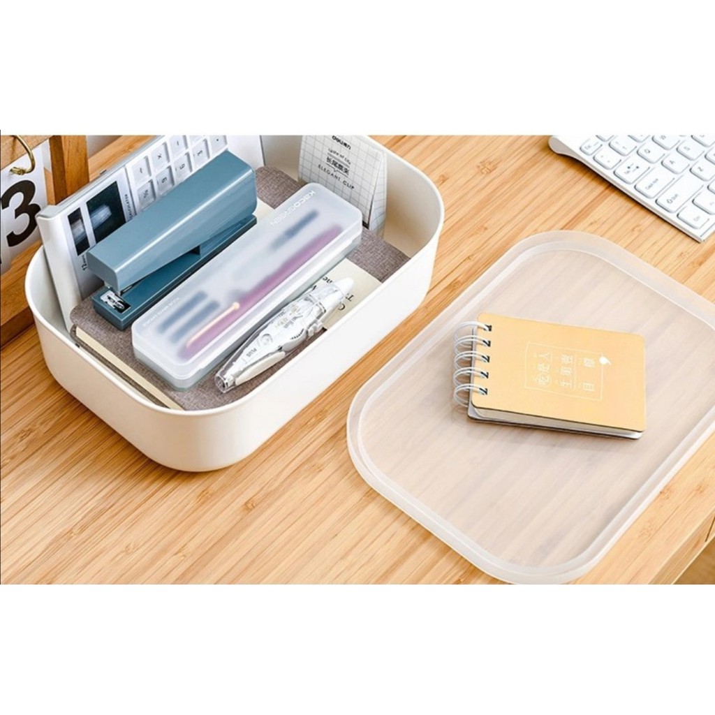 Multipurpose Desktop Portable Cosmetic Storage Box Document Sundries Grocery Stackable Organise lid Kotak Simpanan