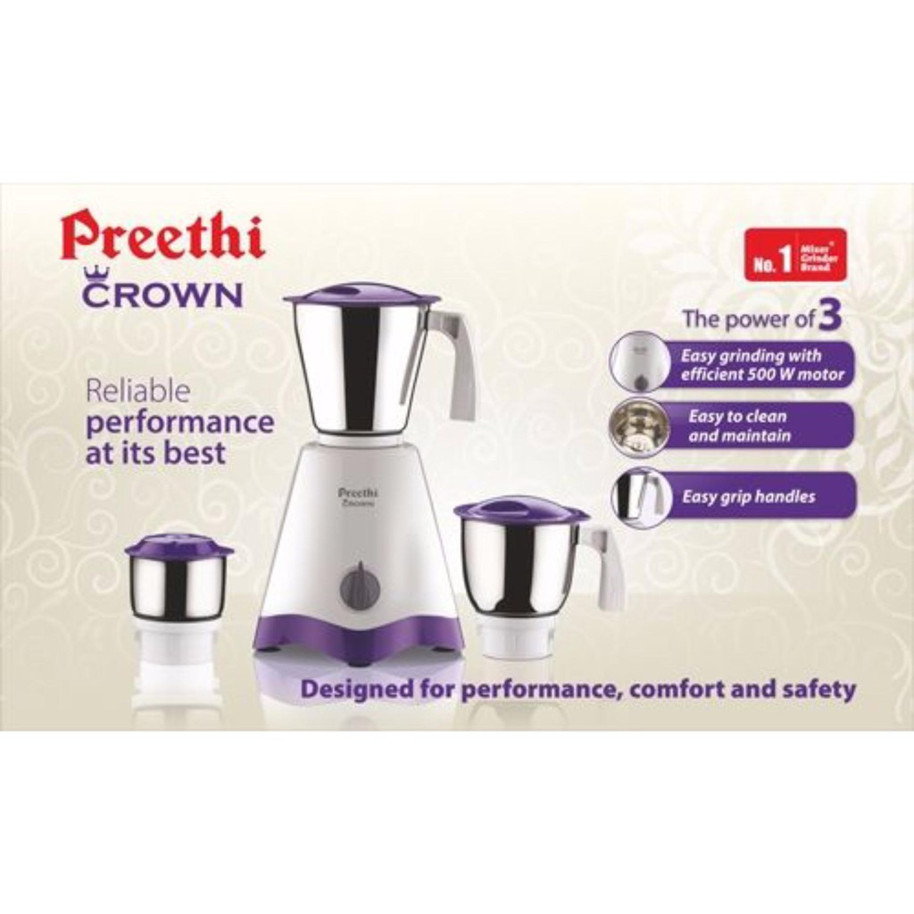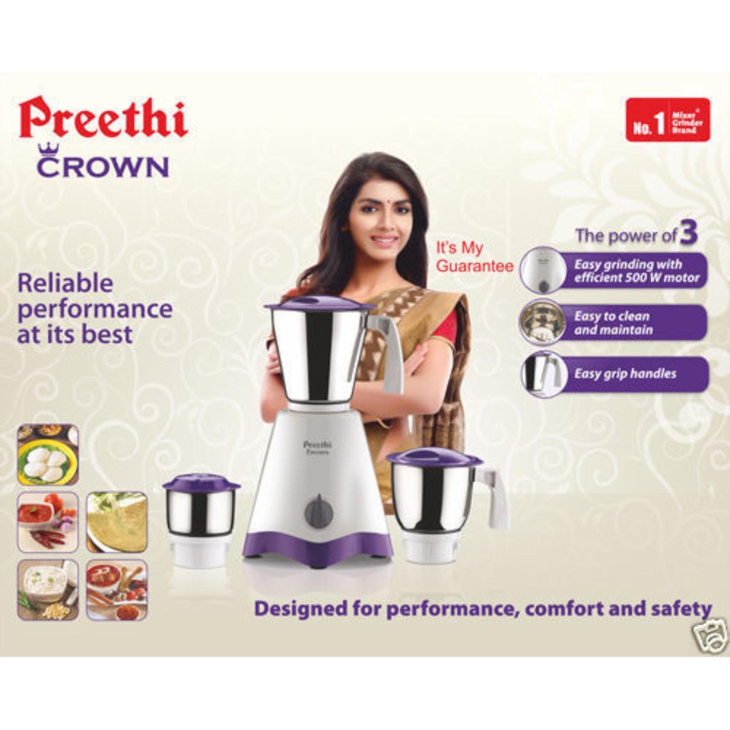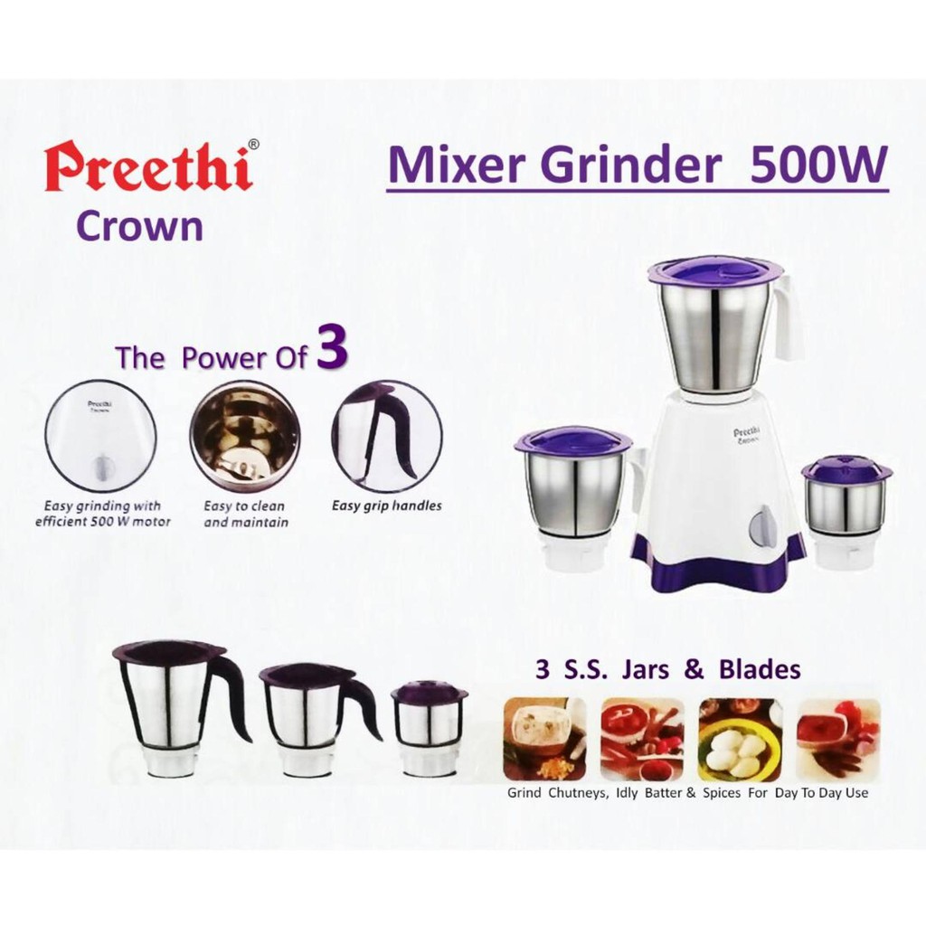 Preethi Crown/Crown Pro/Crown Plus 3/4 Jar Mixer Grinder 500w/600w