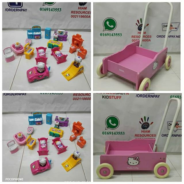 Preloved Hello Kitty Wooden Wagon by Sanrio with hello kitty miniature and furniture