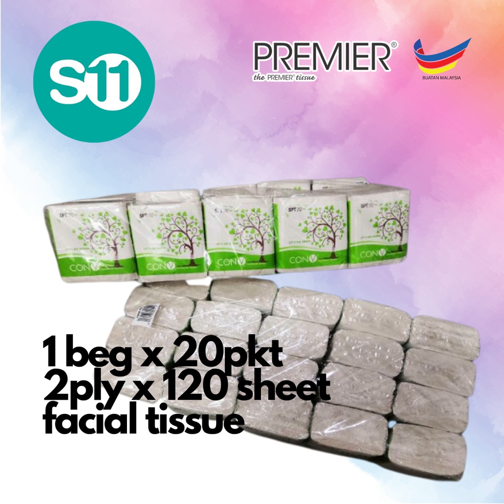 Premier ConV Interfolder (2ply) 120 sheets x 20pkt Single Pull Facial Tissue / Tisu Muka 120keping x 20pkt