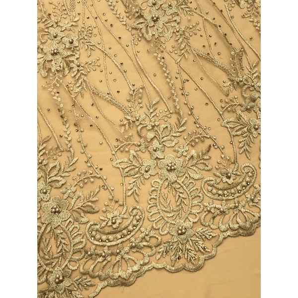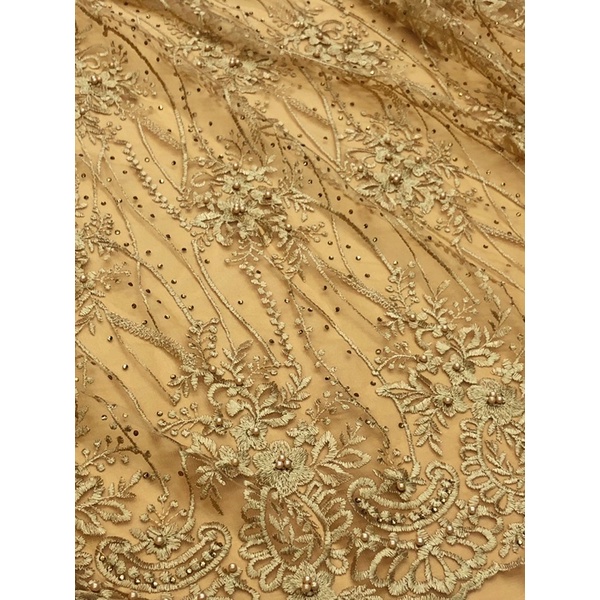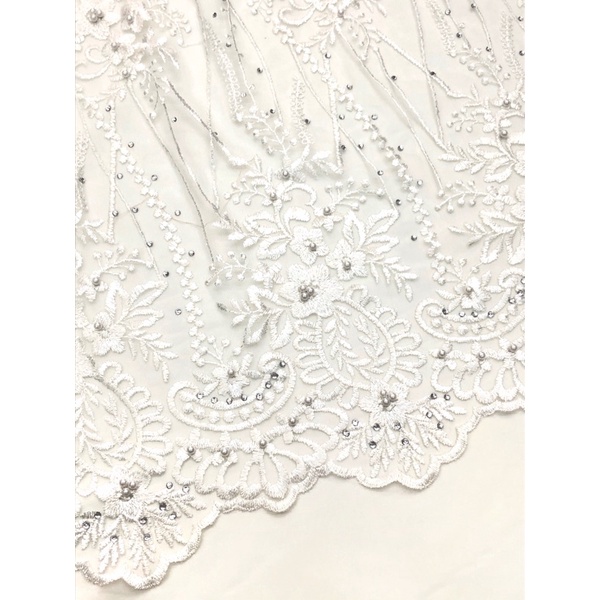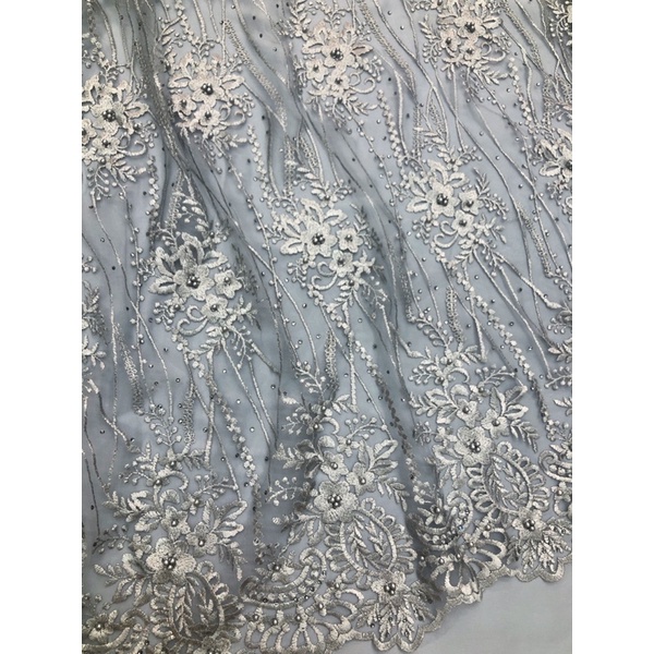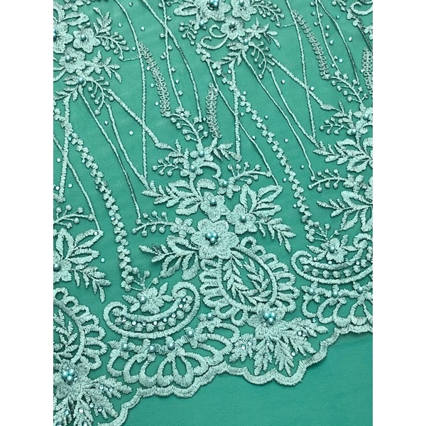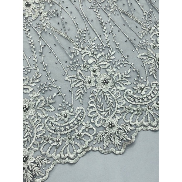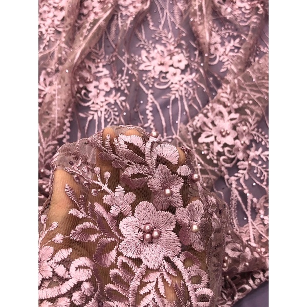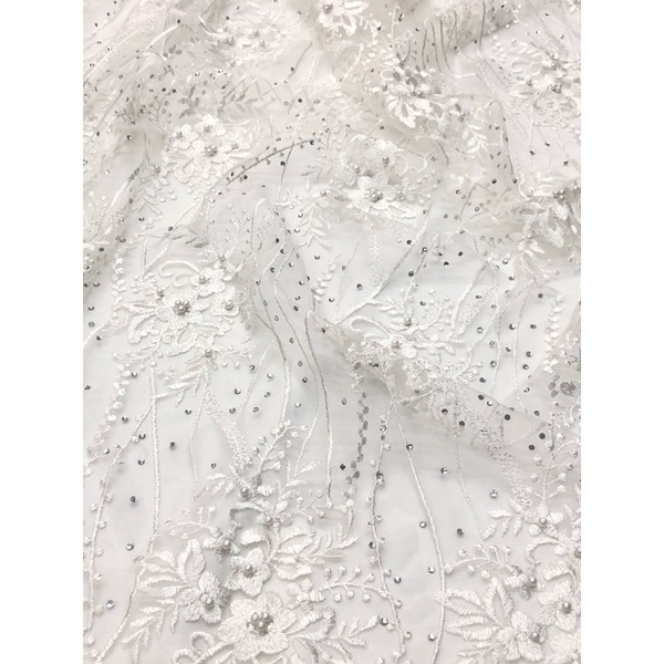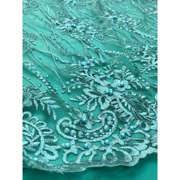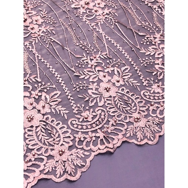 Premium 3D Floral Embroidered Lace & Plain Lining Fabrics / Wedding Floral Lace / Set Kain Lace dan Kain Lining Plain